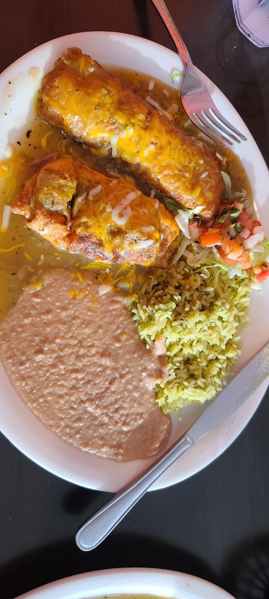 Pictures are a little foggy from the fajita smoke. First off the salsa was amazing and the chips were fresh. I got steak fajitas and they were good. I prefer a little more peppers and a skirt steak style but every restaurant does them a little different. Wife got shredded chicken burrito and must not have read it came with onions but she still enjoyed it. They were slammed but servers were attentive and friendly. Overall we will definitely stop by again when we are in the area.